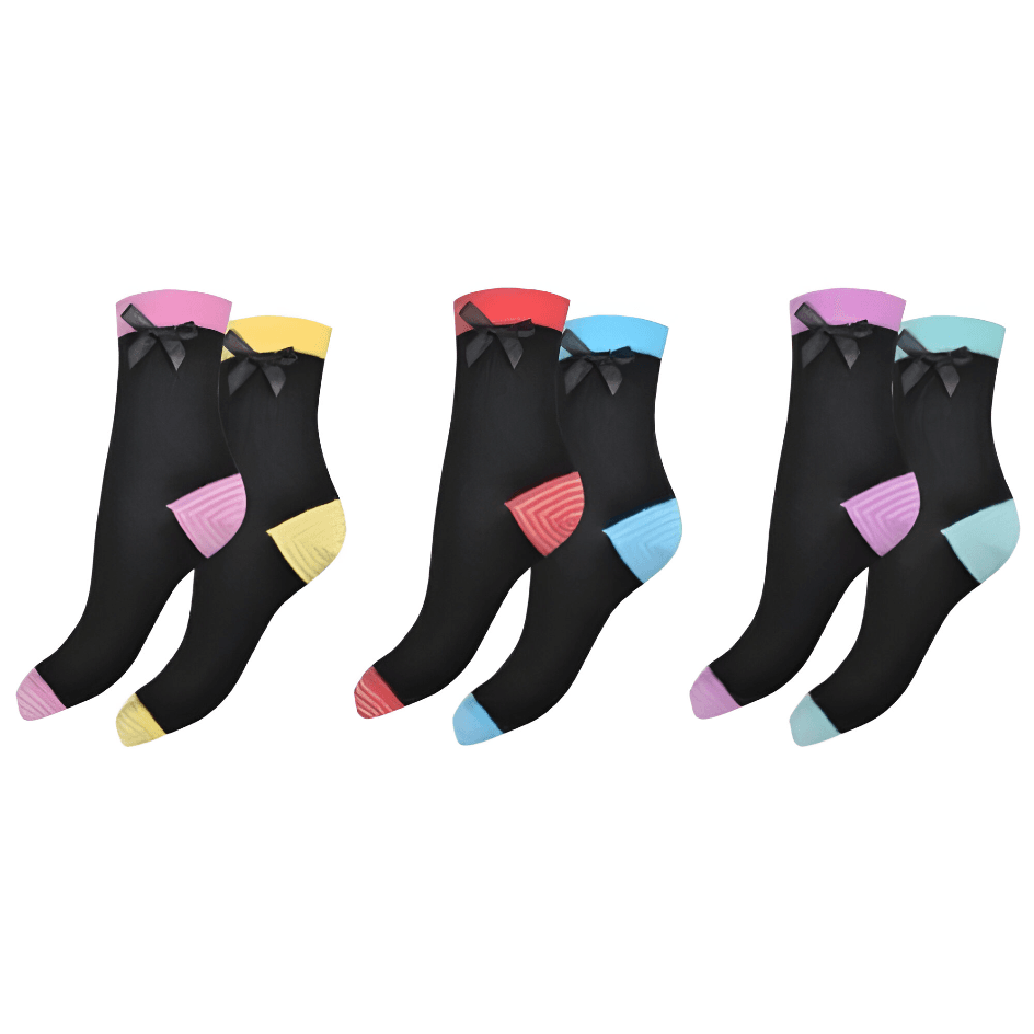 Ladies Contrast Heel & Toe Fashion Socks with Ribbon – Stylish Comfort for Every Step