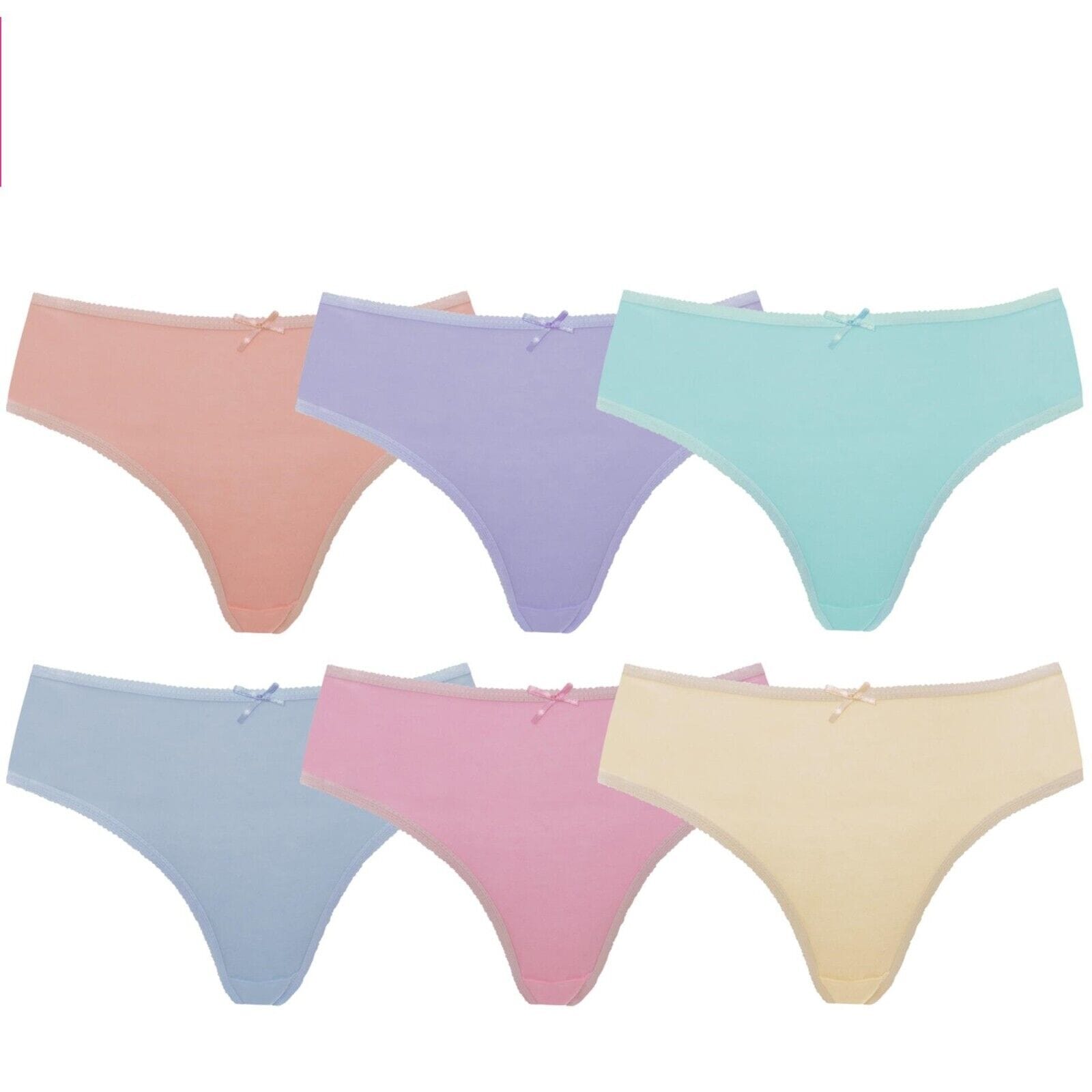 These Ladies Cotton Bikini Briefs come in a great value 6-pack and are designed for everyday comfort, breathability, and a perfect fit. Made from 100% soft cotton, these knickers are gentle on the skin and ideal for all-day wear.